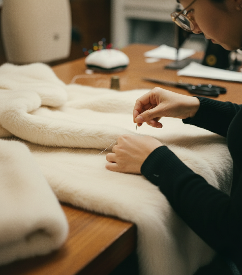 Fabriquée avec soin et précision, nos fourrures vegan sont confectionnés à la main dans notre atelier parisien.